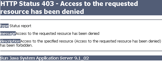 Ist ein Nutzer eingerichtet und einer Gruppe zugeordnet kann man sich endlich authentifizieren. Zu erkennen ist eine gelungene Authentifizierung daran, dass nun eine HTTP 403 - Fehlermeldung erscheint, anstatt die unter form-error-page adressierte Ressource: